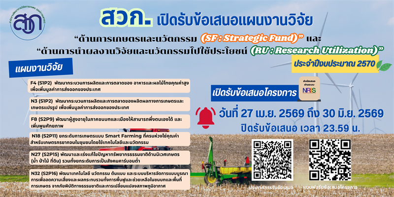 เรื่อง การรับข้อเสนอแผนงานวิจัย “ด้านการเกษตรและนวัตกรร […]