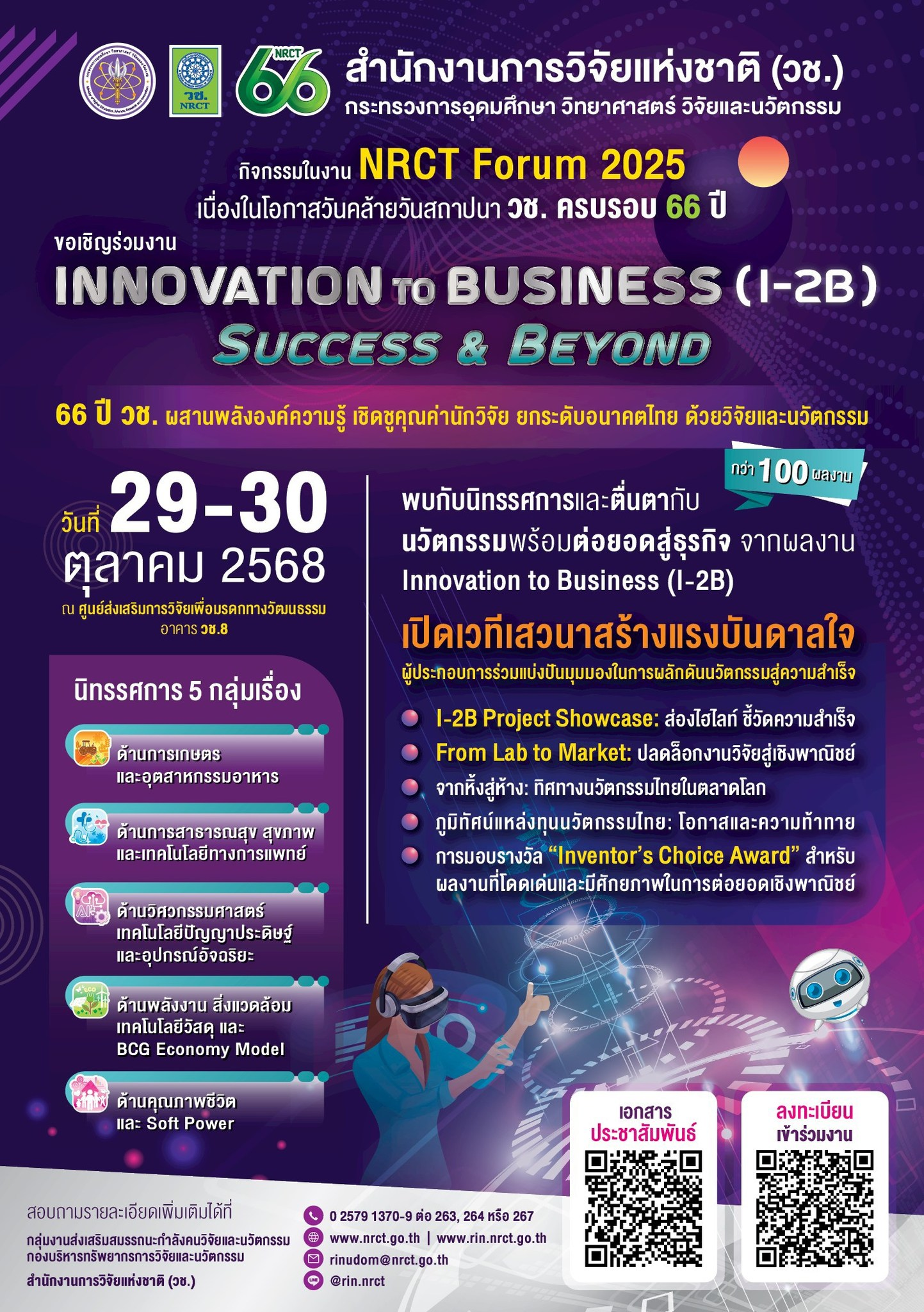🔖 Innovation to Business (I-2B) Success & Beyond: ขับเคลื่อนอนาคตด้วยนวัตกรรม ต่อยอดความสำเร็จนวัตกรไทย