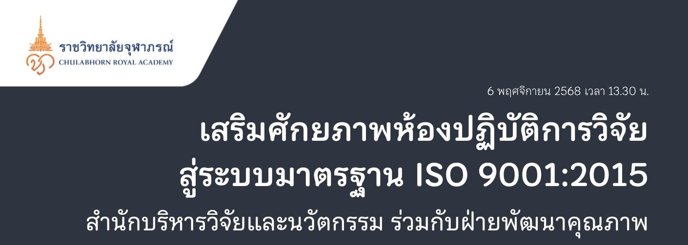 🕊️ “ร่วมขับเคลื่อนมาตรฐานคุณภาพงานวิจัยสู่ระดับสากล ด้วยระบบบริหารคุณภาพ ISO 9001:2015”