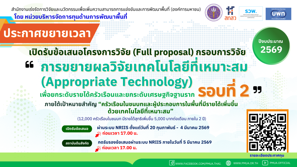📢 ประกาศขยายเวลารับข้อเสนอโครงการฉบับสมบูรณ์ (Full Proposal) ประจำปีงบประมาณ 2569