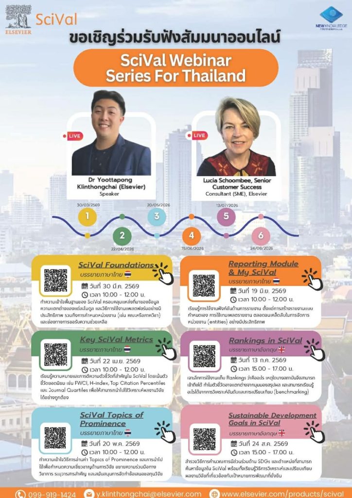 📣ขอเรียนเชิญอาจารย์ นักวิจัย บุคลากร เข้าร่วมรับฟังการสัมมนาออนไลน์ 🎓✨ “SciVal Webinar Series for Thailand”